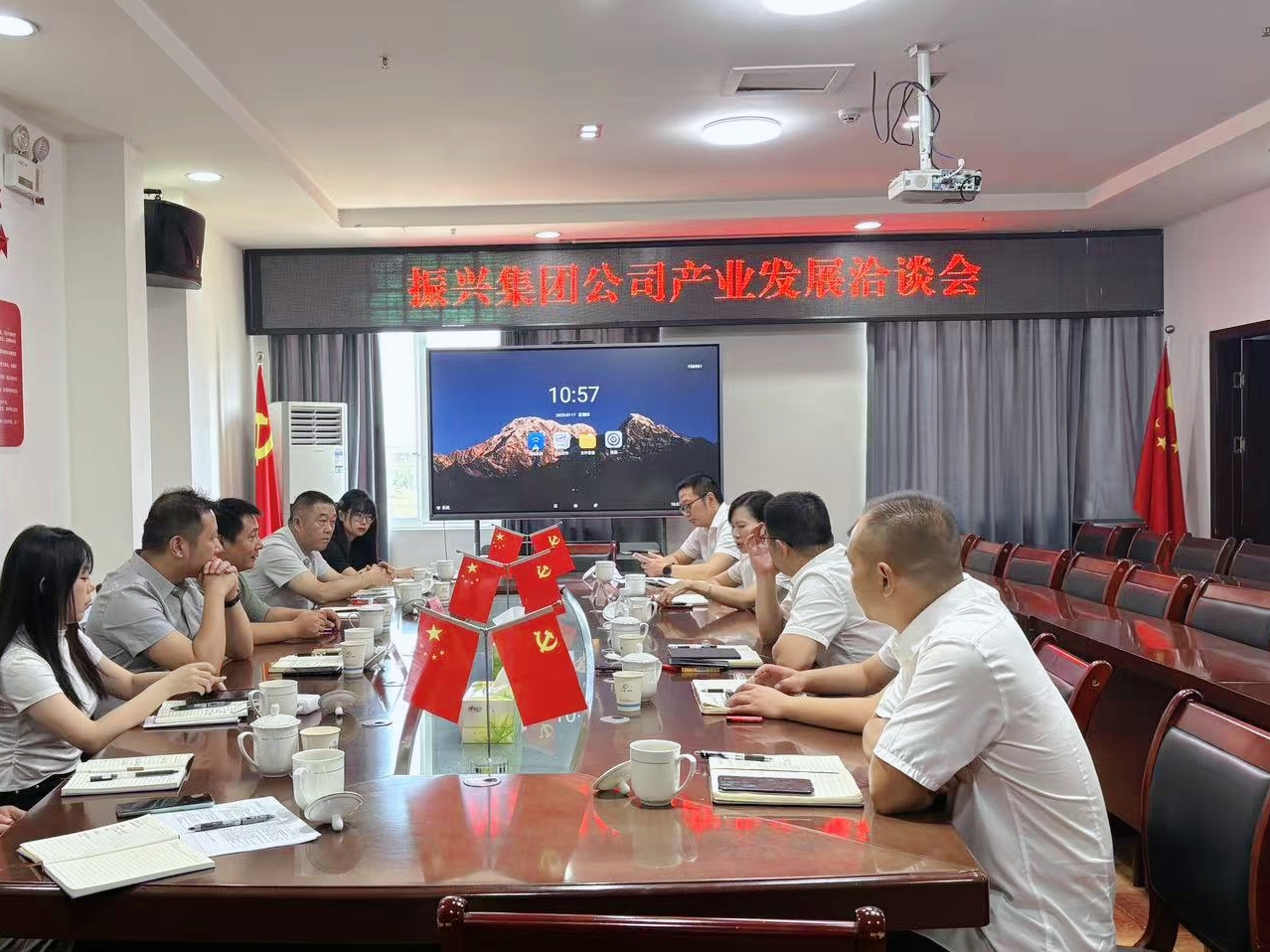 7月17日,四川天府糧倉農(nóng)業(yè)開發(fā)有限公司與匯興集團圍繞深化農(nóng)業(yè)產(chǎn)業(yè)發(fā)展合作等事宜展開深入洽談。會上,雙方重點探討了特色農(nóng)產(chǎn)品品牌打造、種業(yè)創(chuàng)新、社會化服務及現(xiàn)代農(nóng)業(yè)園區(qū)建設等領域的合作潛力與實施路徑。集團公司董事長黃寧、總經(jīng)理趙剛,振興集團總經(jīng)理楊翼,縣農(nóng)業(yè)農(nóng)村局、中咨公司相關人員參與交流。