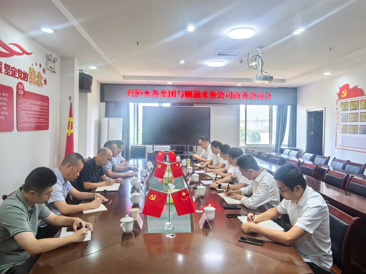 9月25日,瀘州市興瀘水務(wù)(集團(tuán))股份有限公司到瀘縣順通水務(wù)有限公司開展洽談。集團(tuán)公司總經(jīng)理助理、明生公司總經(jīng)理張可、順通公司、大數(shù)據(jù)公司、市政公司相關(guān)負(fù)責(zé)人參加。